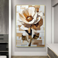 Blending the organic beauty of a single flower with modern design. Crafted with intricate textures and warm, earthy tones, the piece transforms petals and leaves into captivating mosaic-like shapes. The soft contrasts and layered patterns exude a sense of refined sophistication.