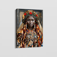 Experience the irresistible appeal of "Golden Couture," a stunning portrait painting that captures the essence of elegance and sophistication. Behold the striking beauty of an African lady with piercing, beautiful eyes, dressed in a radiant, fashionable dress and gold-colored accessories. Feel the enchantment as her gaze transports you to the depths of her soul, inviting you to immerse yourself in her world of style and grace. Bring home this exquisite masterpiece today and adorn your space with the timeless beauty of "Golden Couture."