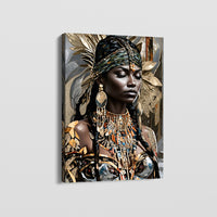 Experience the captivating essence of "Golden Fighter," a portrait painting depicting a tribal woman adorned with intricate tribal accessories. With her striking presence and contemplative gaze, she exudes strength and resilience. Symbolizing her connection to nature and her heritage. Feel the power and grace emanating from this mesmerizing artwork, as it invites you to delve into the rich tapestry of tribal culture and tradition. Bring home this exquisite masterpiece today and adorn your space with the beauty and cultural significance it embodies.