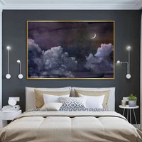 This artwork transports you to a realm of quiet wonder, where a sliver of a crescent moon watches over dreamy clouds, bathed in the soft glow of distant stars. It evokes a tranquil sense of peace and reflection, perfect for spaces that invite relaxation and calm.