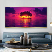 Lose yourself in the dusk island vibes of "Purple Sunset" by Crib of Art.