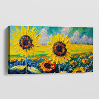 This vibrant painting evokes the joy of summer days spent among blooming sunflowers. Each textured stroke captures the essence of sun-drenched fields and golden warmth. Allow this artwork to transport you to carefree moments under a bright summer sky