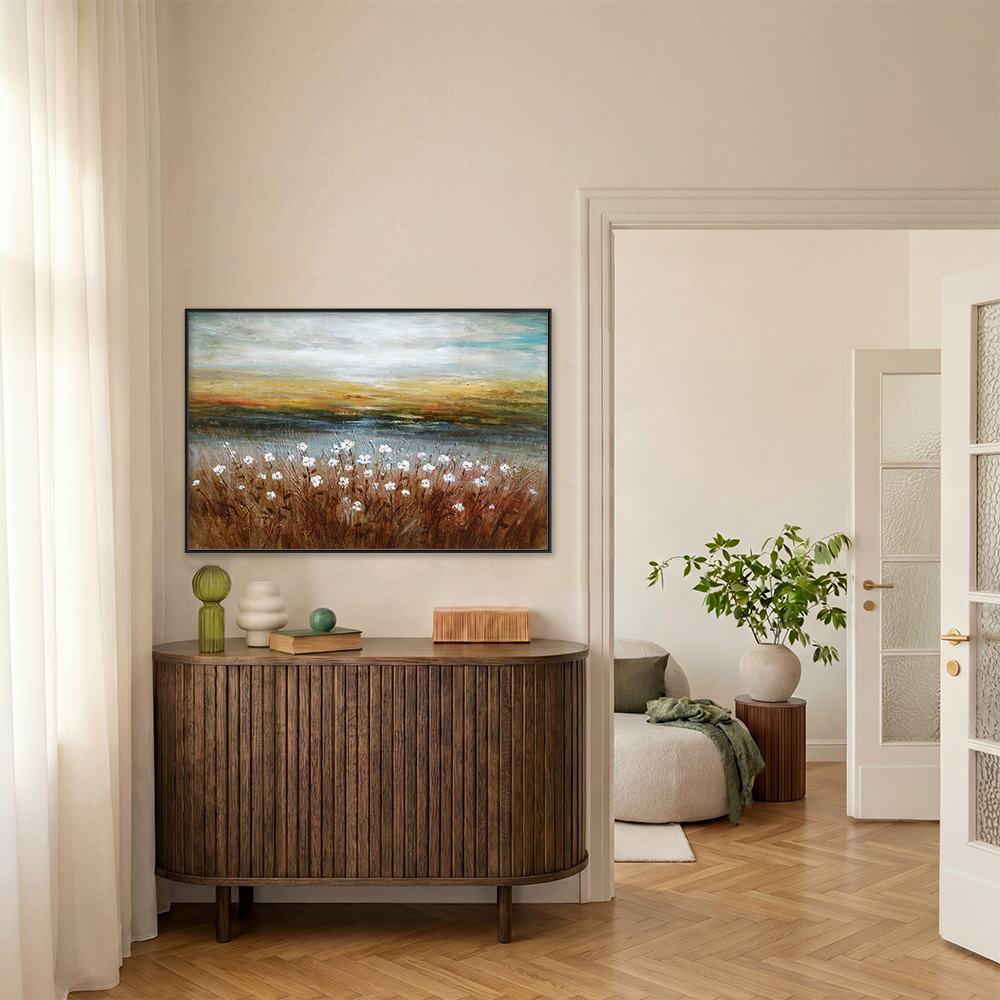 • Framed canvas: Canvas artwork set inside a floating frame, creating depth and a gallery-style feel.