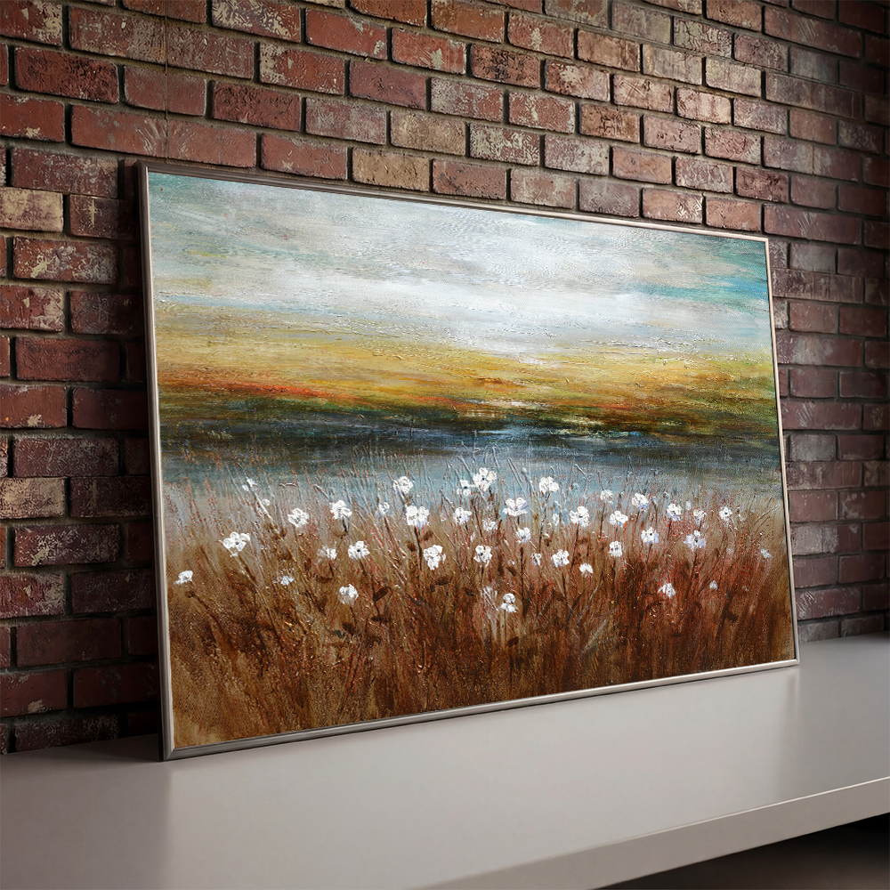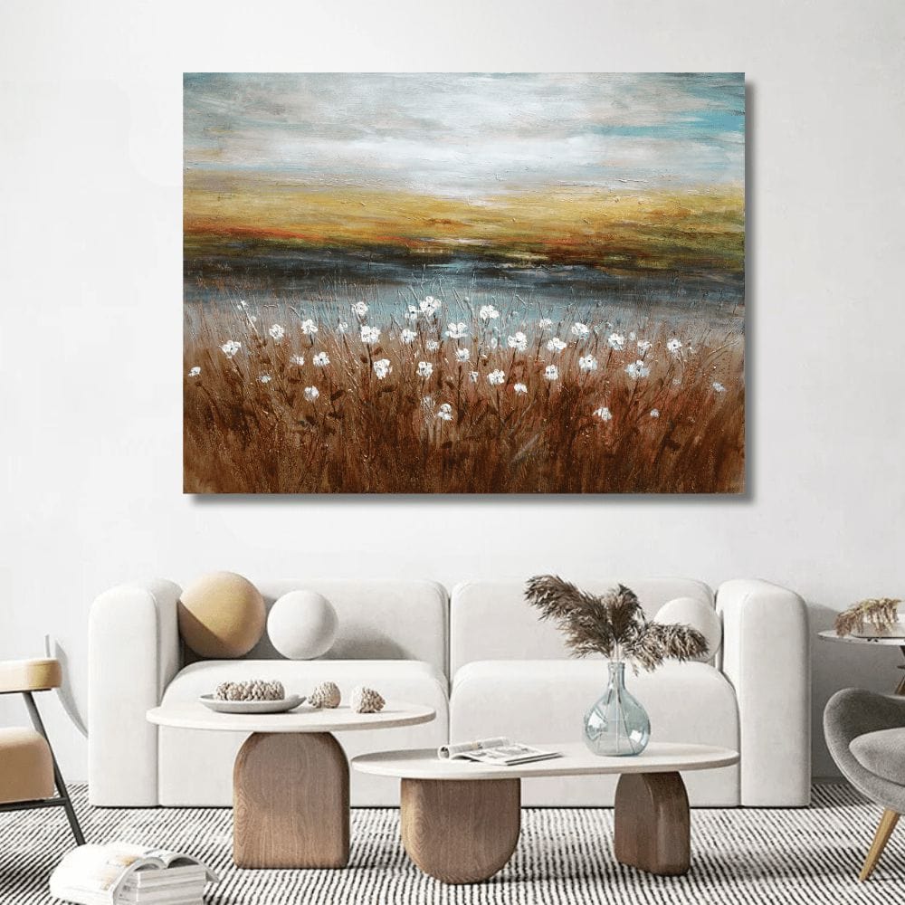 This painting brings warmth and a grounded sense of nature into any space. Its serene palette and textural depth make it a captivating centerpiece. Buy "Earthy Meadows" by Crib of Art today and transform your walls with its rustic elegance.