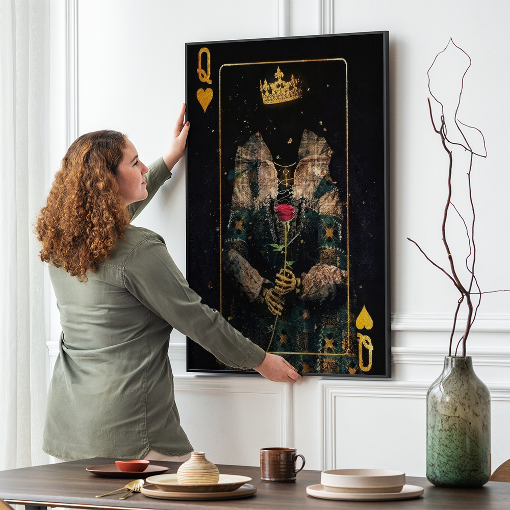 Enter the world of "Queen of Hearts" and fall in love with its captivating beauty. Purchase this intriguing artwork today and add a sense of mystery to your space.
