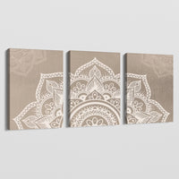 Get ready to embrace tranquility with "Serene Mandala." This enormous mandala painting, divided into three frames, features calm colors in white and beige. The intricate design and soothing hues create a peaceful and harmonious atmosphere. Perfect for any space, this artwork brings a sense of balance and serenity.