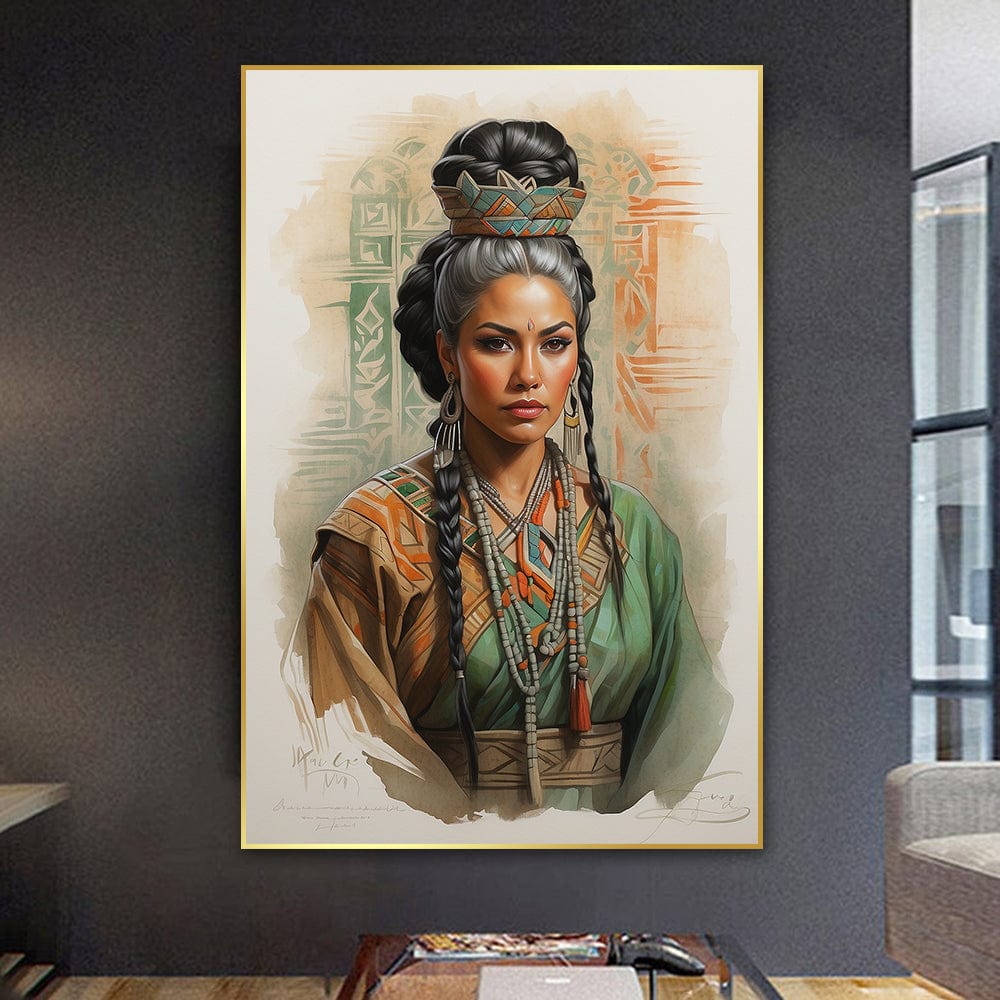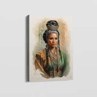 Experience the impressive charm of "Ethnic Beauty," an enchanting depiction of a tribal woman exuding gentleness and submission. Her braided hair complements her exquisite charm as she wears vibrant orange and green attire. With each brushstroke, she captures the timeless elegance and cultural richness of her heritage. Get this alluring gem right away to enhance your surroundings with its indisputable charm and cultural significance.