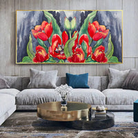 This striking artwork pulsates with bold colors and flowing shapes, radiating the fierce beauty of poppies in full bloom. It’s an invitation to revel in nature’s exuberance, bringing an energizing, yet harmonious spirit to any room. Each glance reveals intricate details and a kaleidoscope of colors, perfect for those who crave bold expression and artistic flair.