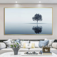 This mesmerizing artwork invites you to pause and reflect, as a solitary tree stands tall, mirrored perfectly on the calm, misty waters. It embodies tranquility, offering a gentle reminder to find moments of quiet in our busy lives. The soft tones and delicate composition bring a sense of harmony, making it the ideal piece for creating a peaceful atmosphere in any room.