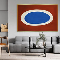 A vibrant cobalt oval sits gracefully at the center, encircled by a soft white rim and set against a warm terracotta backdrop. The minimalist design creates a harmonious blend of vivid color and understated elegance.