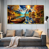 Capture the brilliance of a perfect autumn afternoon with “Boat in the Golden Glow” by XAYNAGELAST x Crib of Art—a luminous escape into nature’s gentle embrace.
