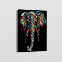 Introducing "Elephant Kunye," a mesmerizing art painting of the majestic elephant. This stunning masterpiece portrays the head of an elephant. Beautifully adorned with an explosion of vibrant colors. Bring life against a deep black background.