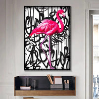 This piece is ideal for a contemporary living room or an eclectic art gallery wall, adding a touch of personality and flair to any setting. Purchase this eye-catching artwork today and make a statement with the "Graffiti Flamingo" in your home.
