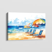 Picture the gentle hum of waves and the rustle of parasols dancing in the wind. This artwork whispers tales of serene escapes and quiet moments by the shore. A perfect piece to bring that sunlit calm into your home, reminding you to slow down and savor life’s simple joys.