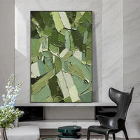 Revel in refined beauty. This artwork offers a symphony of green hues, blending abstract forms with rich textures. It’s a celebration of elegance and complexity, perfect for those who appreciate the depth and subtlety of abstract art.