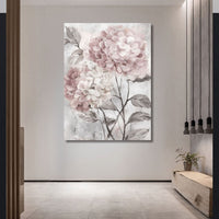 Behold the delicate beauty of "Soft Hydrangea." This minimalist painting captures the serene charm of hydrangeas in soft white and pink hues. The gentle color palette and simple design bring a soothing touch to any space. Perfect for adding a subtle, elegant accent to your decor, this artwork creates a calming ambiance.