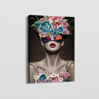 "Sweet Vision" captures a cool and pretty portrayal of a woman adorned with sunglasses and flourishing flowers. This captivating portrait exudes a sense of style and charm, with the sunglasses adding an element of mystery and allure. Picture the blossoms framing her face, creating a vision of beauty and grace.