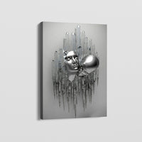 "Through" is a captivating artwork that defies boundaries and sparks fantasy. This masterpiece portrays two humanoid heads sculpted from chromatic steel. Engaged in a passionate kiss that transcends physical barriers. As they seem to appear to emerge from a solid wall.
