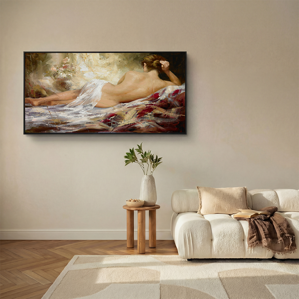 • Framed canvas: Canvas artwork set inside a floating frame, creating depth and a gallery-style feel.