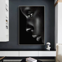 Delve into the allure of "African Beauty," a mesmerizing close portrait capturing the essence of a woman with charcoal skin against a profound black backdrop. This stunning artwork offers a side view, akin to a captivating silhouette, adding an air of mystery to its visual narrative. The rich tones and delicate detailing accentuate the natural beauty, celebrating the depth and complexity of African heritage.
