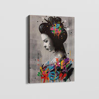 Capture the grace and allure of the Far East with "Asian Woman," a captivating portrayal of a Japanese geisha in a unique graffiti-inspired art painting. This piece effortlessly blends tradition with contemporary flair, it's an emotive journey into the beauty of Asian heritage.