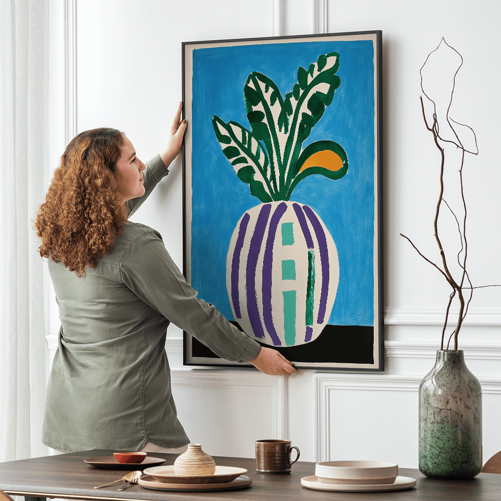 - Canvas: Artwork printed on canvas and stretched over a wooden frame for a clean, modern look.