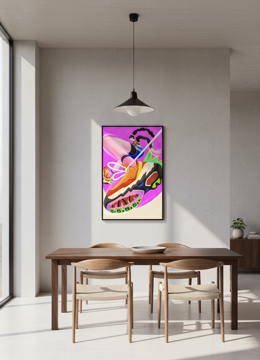 Designed to resonate and spark a mix of feelings. Every day. Whether you love art or just looking to decorate your home, this hand-stretched piece will instantly create a new ambience and massively impact your daily life.