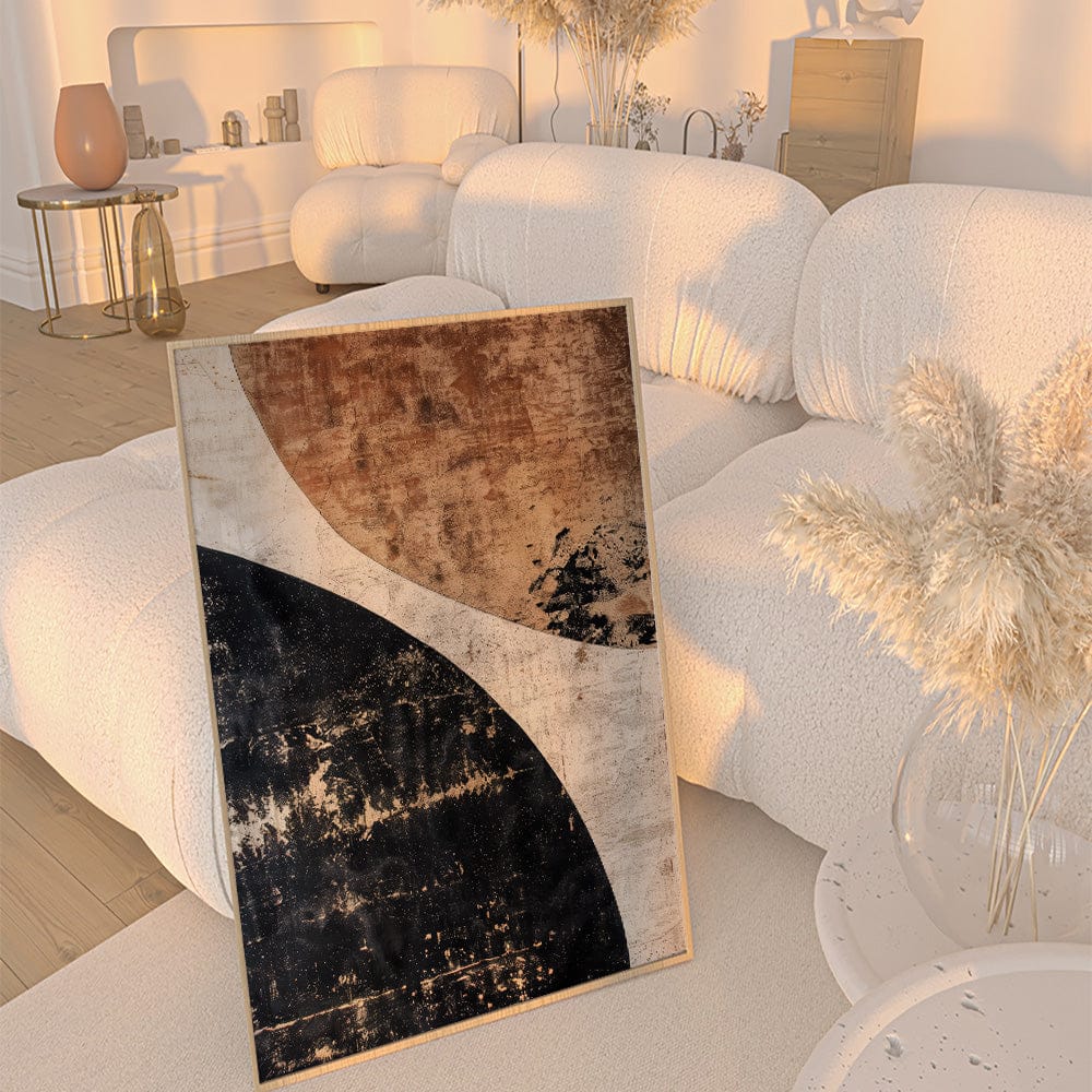 Step into a realm of bold contrasts with this captivating piece that harmonizes earthy warmth with deep shadows, creating a balance that feels both raw and refined. Its textured presence invites reflection, as though every curve and mark carries a whisper of time. Perfect for modern interiors seeking depth and character.
