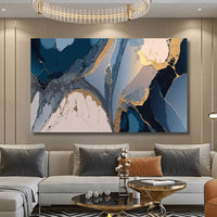 Deep navy, soft blush, and delicate grays create a stunning interplay of contrasts, while the gilded lines add a touch of opulence. This masterpiece reflects refined artistry, elevating any space with its luxurious charm.