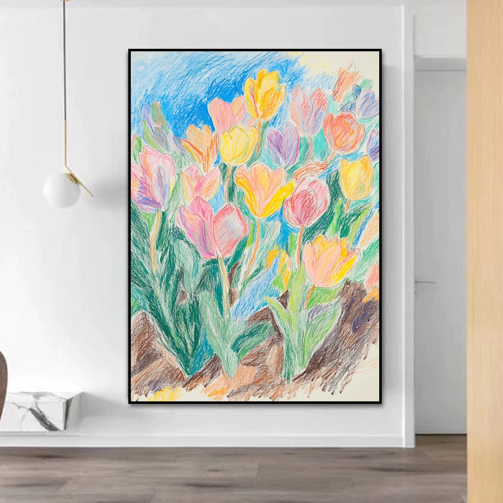 This artwork tells a story of growth and renewal, perfect for brightening spaces with its cheerful energy. The pastel palette and expressive strokes add depth and character to any setting. Buy "Pastel Flora" by Crib of Art and infuse your home with the timeless beauty of spring.