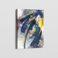 "Blue & Yellow Abstract," a visually captivating artwork that brings a burst of vibrant energy to your laundry room. This hand-stretched masterpiece, with its dynamic interplay of colors, transforms mundane chores into a visual delight.