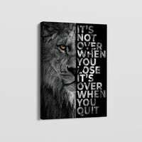 Transform your office or inspire a college-bound child's room with the empowering presence of "Never Quit." This remarkable piece features a majestic lion, a symbol of strength and resilience, accompanied by the profound quote, "It's not over when you lose, it's over when you quit." Ideal for spaces where determination and perseverance thrive, this art serves as a visual anthem against surrender.
