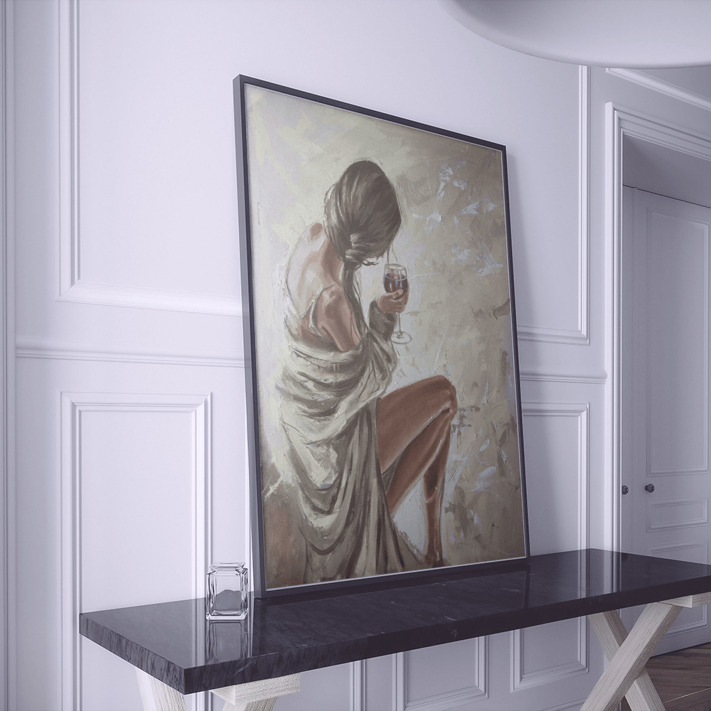 Adoptez le charme du « Boho Chic », un portrait moderne capturant l'essence de la sophistication. Sur fond de beige apaisant, cette œuvre d’art captivante représente une femme s’adonnant à un moment de loisir en savourant un verre de vin. Avec son style contemporain et son charme intemporel, « Boho Chic » ajoute une touche d'élégance à n'importe quel espace.