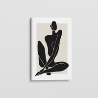 Entrez dans un royaume d'élégance discrète avec « Behold Beauty ». Cette peinture d’art met en valeur avec respect la beauté d’une femme. La figure esquissée peinte en noir se tient dans une posture gracieuse. Sur un fond beige et blanc tranquille, créant un tableau visuellement captivant. L'utilisation habile du contraste et du minimalisme attire l'attention sur l'allure intemporelle de la femme.