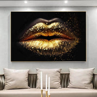 Découvrez l'allure opulente de « Golden Kiss », un chef-d'œuvre sensuel qui respire l'élégance et la sophistication. Imaginez une peinture de lèvres dorées réalisées en or chatoyant sur un fond de noir profond, créant un contraste fascinant qui exige l'attention.