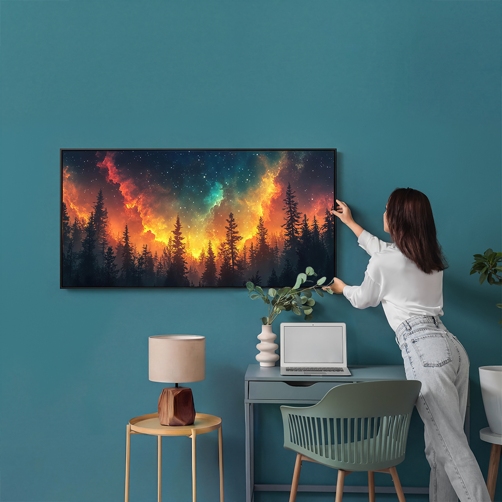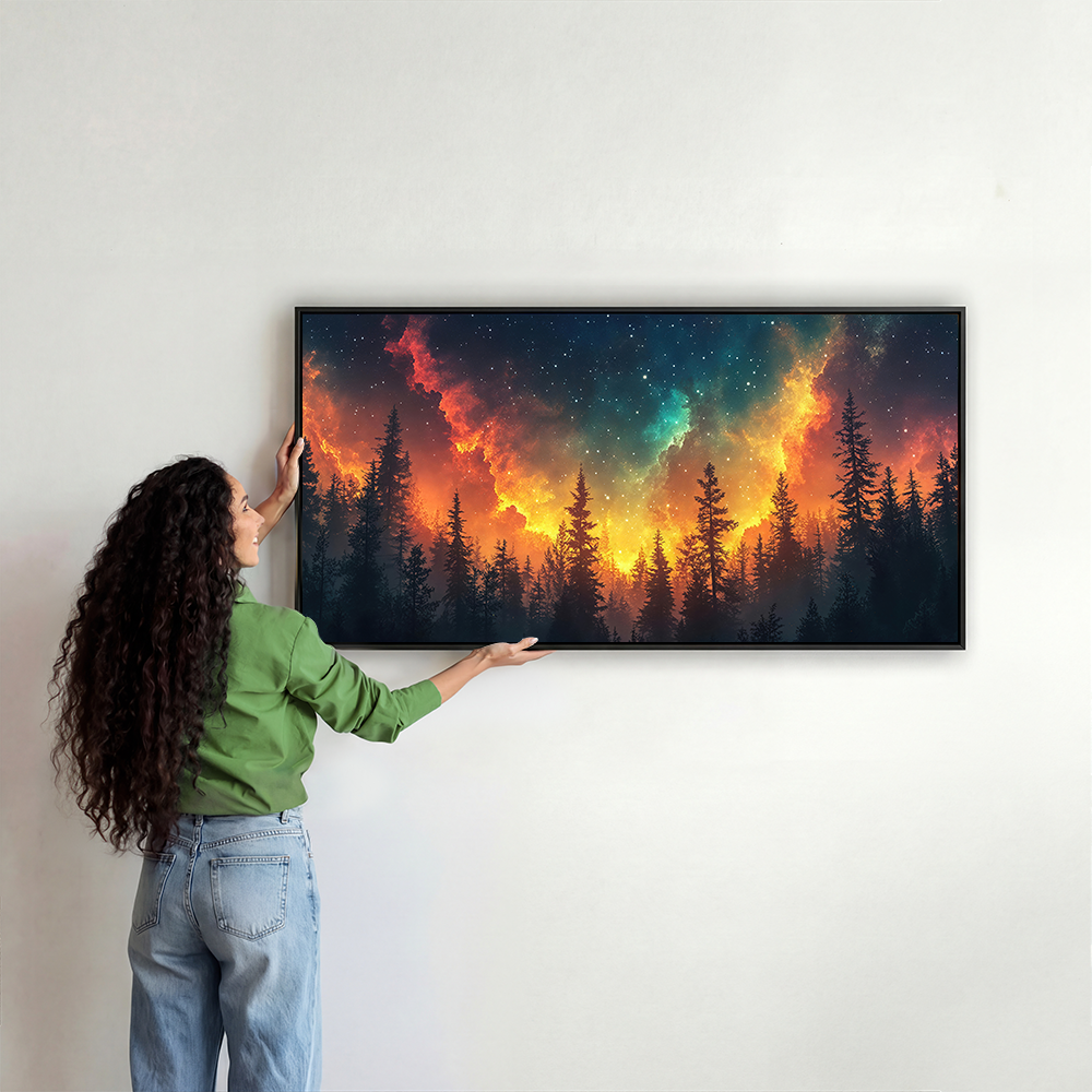 Tous nos cadres sont livrés avec un système de montage simple pour fixer votre tableau au mur.