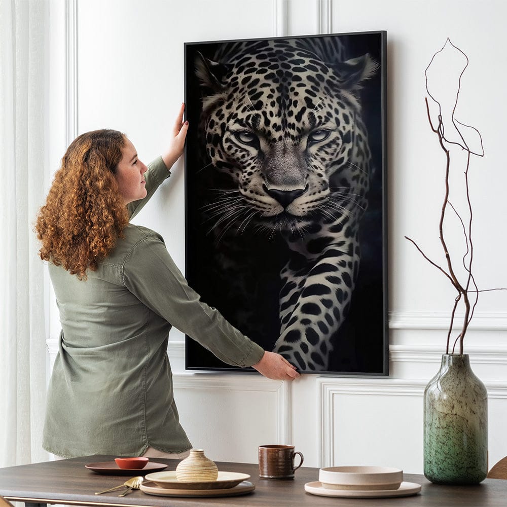 Tous nos cadres sont livrés avec un système de montage simple pour fixer votre tableau au mur.