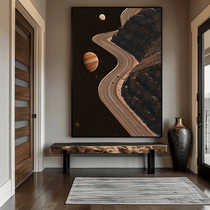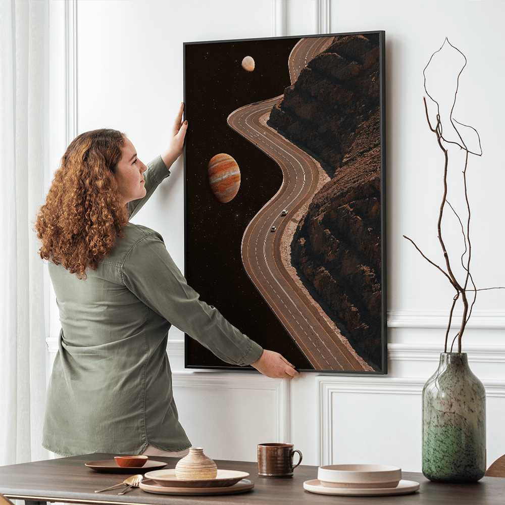 Tous nos cadres sont livrés avec un système de montage simple pour fixer votre tableau au mur.