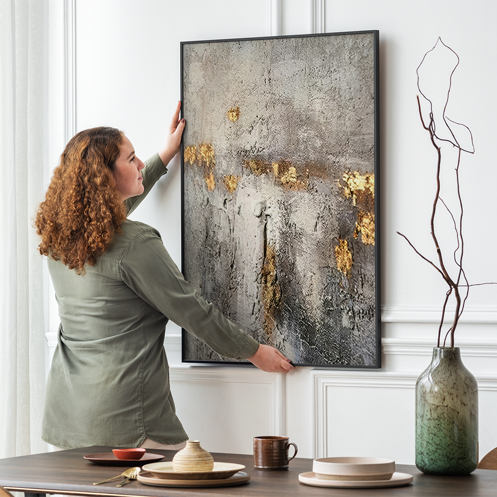 Al onze lijsten worden geleverd met een eenvoudig montagesysteem waarmee u uw schilderij aan de muur kunt bevestigen.