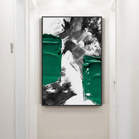Of u nu een kunstliefhebber bent of gewoon een vleugje creativiteit aan uw woonruimte wilt toevoegen, "Green & Black Oil Abstract" is iets voor u. Het belooft uw dagelijkse sfeer opnieuw te definiëren, waar levendige tinten in harmonie dansen en een visuele symfonie creëren. Dit boeiende stuk, een viering van kleur en vorm, combineert naadloos moderne esthetiek met een vleugje avant-garde.