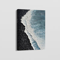 Bring the vibrant hues of "Black Sand Waves" into your home. This handcrafted abstract oil painting on canvas depicts an exquisite black sand beach, capturing the beauty of white foam waves crashing onto it. It is ideal for bringing a little drama from nature into any space.