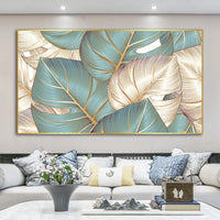 Add a touch of natural beauty by adding "Gold and Green" to your space. This abstract artwork features stunning monstera plant leaves in shades of green and gold. It's perfect for adding a modern and sophisticated vibe to any room.