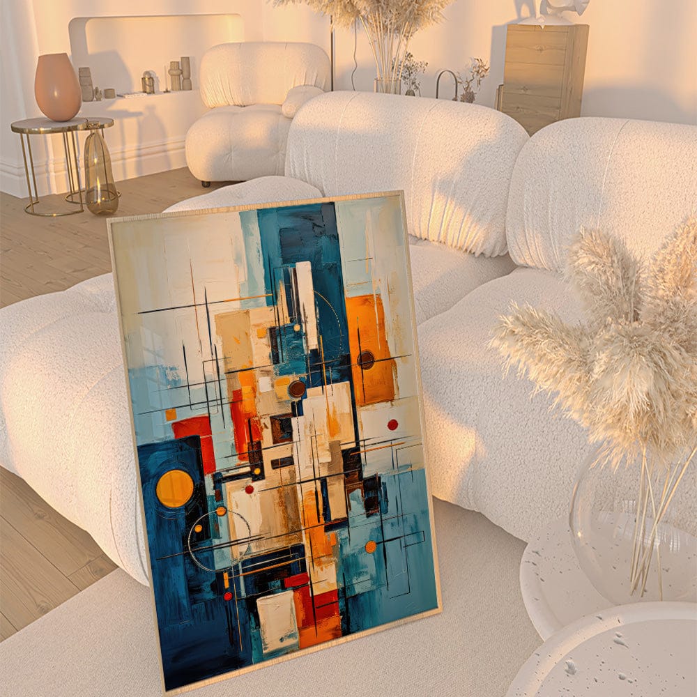 This vibrant artwork pulses with energy, weaving together shapes and colors that dance in harmony. It’s a bold exploration of movement and structure, perfect for those who appreciate the interplay of chaos and order. Ideal for lovers of abstract art, this piece will spark conversations and inspire creativity, making any room come alive with its geometric symphony.