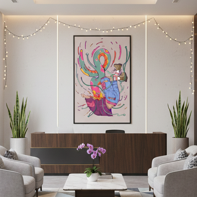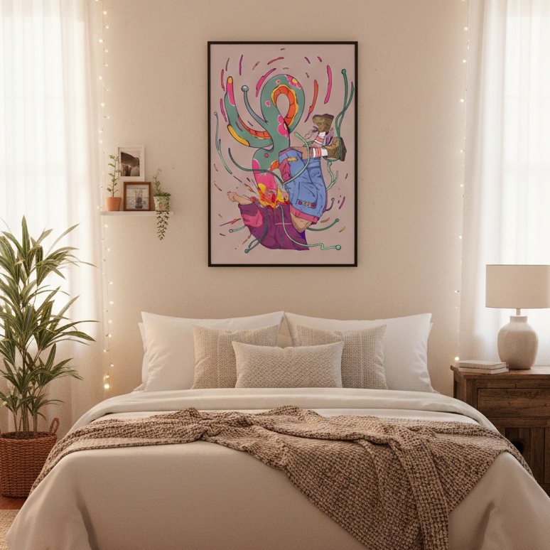Designed to resonate and spark a mix of feelings. Every day. Whether you love art or just looking to decorate your home, this hand-stretched piece will instantly create a new ambience and massively impact your daily life.